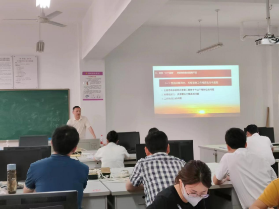 5月30下午,学院党委书记李志刚在崇慧楼205为全院教职工讲授主题为《牢牢把握“六个坚持”,推动学院事业高质量发展》专题党课。李志刚从“深刻把握习近平新时代中国特色社会主义思想的世界观、方法论”、“对照‘六个必须坚持’,学院存在的问题和不足”、“学以致用,推动学院高质量发展”三个方面详细阐述习近平新时代中国特色社会主义思想的世界观、方法论和贯穿其中的立场观点和方法,并对标“六个必须坚持”,深入分析了学院存在的问题和不足,同时强调,必须学以致用,进一步厘清学院发展思路,扎实推进1236发展策略,在绘制蓝图、落实任务、整合资源、执行进度、抓出实效上下功夫;通过进一步解放思想寻找发展新路径、新动能,在开放办学、兼容并包上出新招、出实招。学院上下同心协力,继续奋斗,扎实推进学院事业高质量发展。