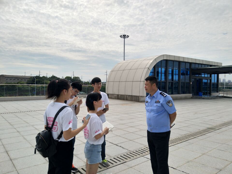 队员们首先采访了民警大队谢队长,谢队长给实践服务队介绍了车站的治安情况和自己的工作职责,其中谢队长提到:“全心全意为人民服务”是站点所有工作人员的行动准则。