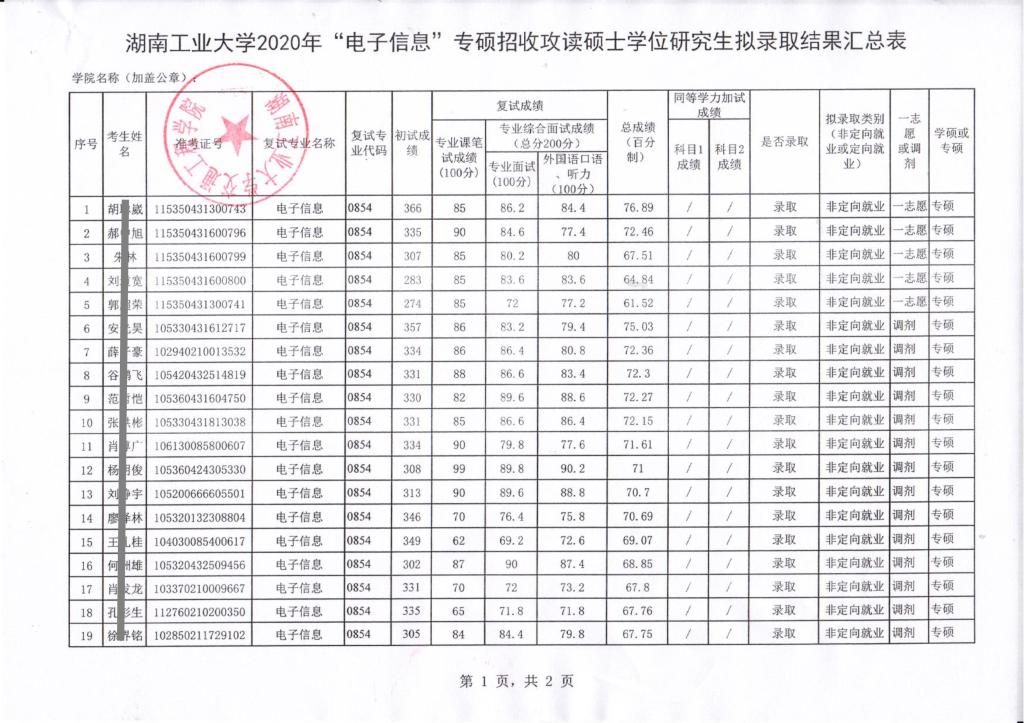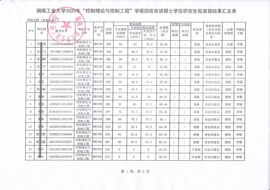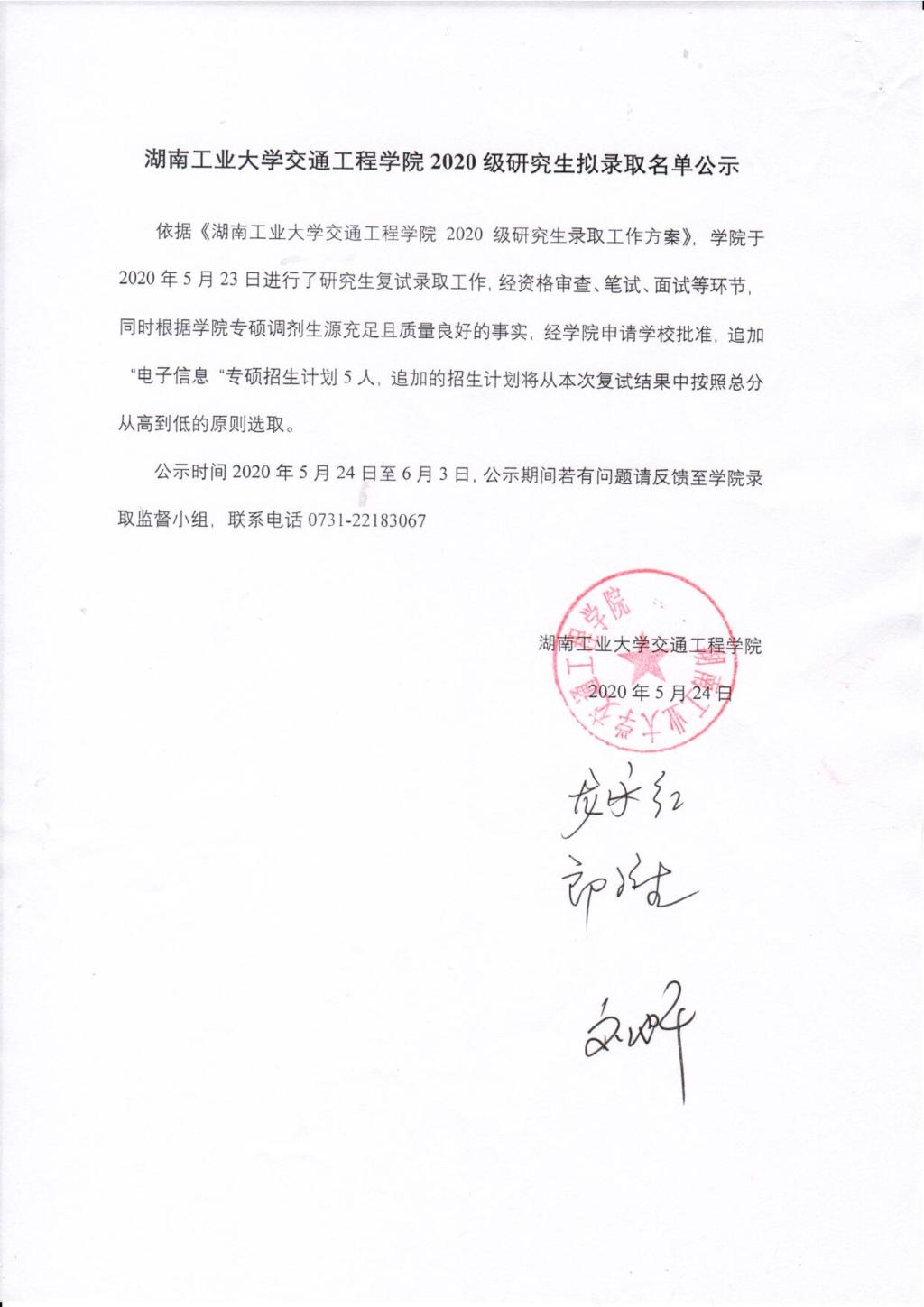 湖南工业大学交通工程学院2020级研究生复试名单公示