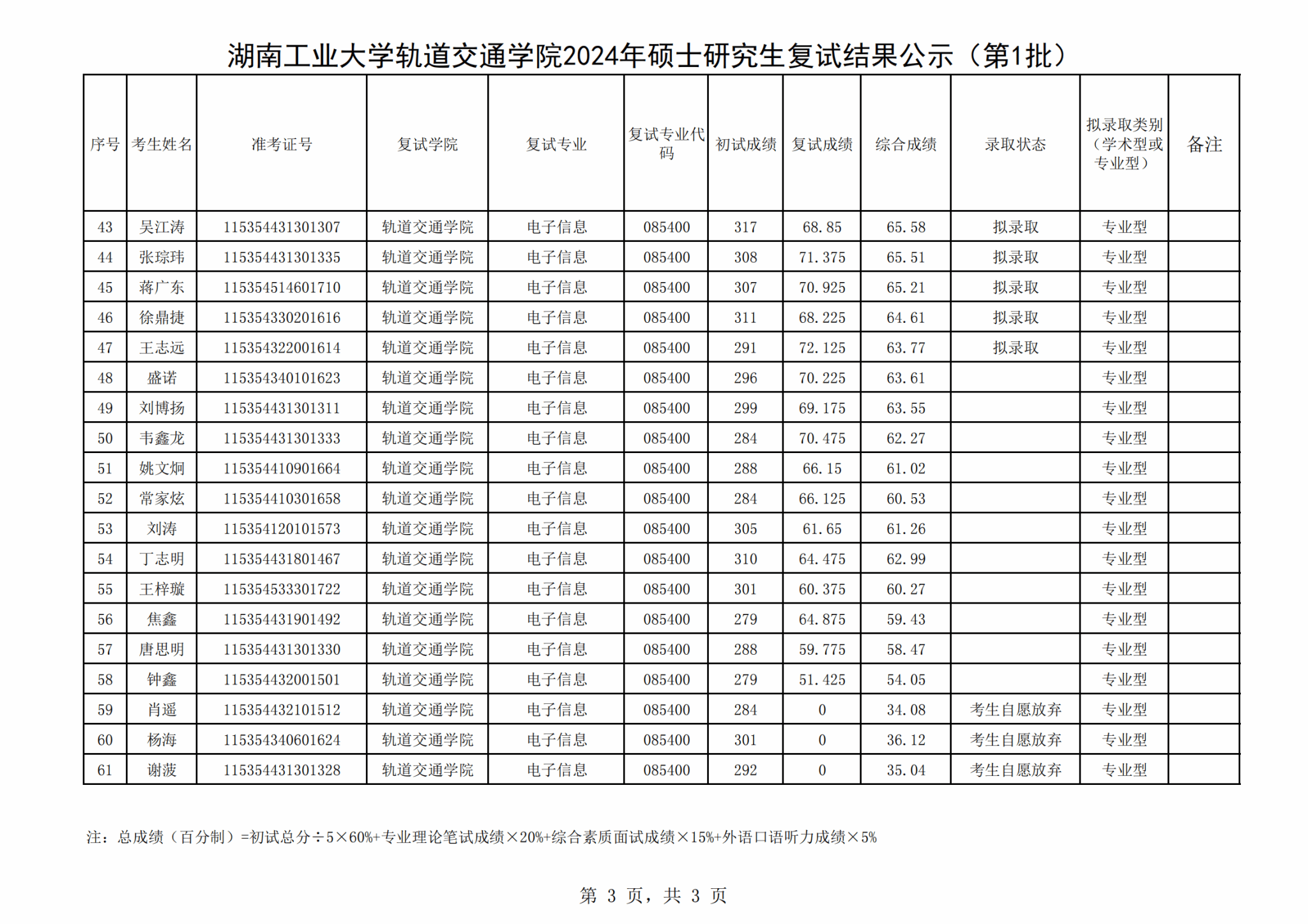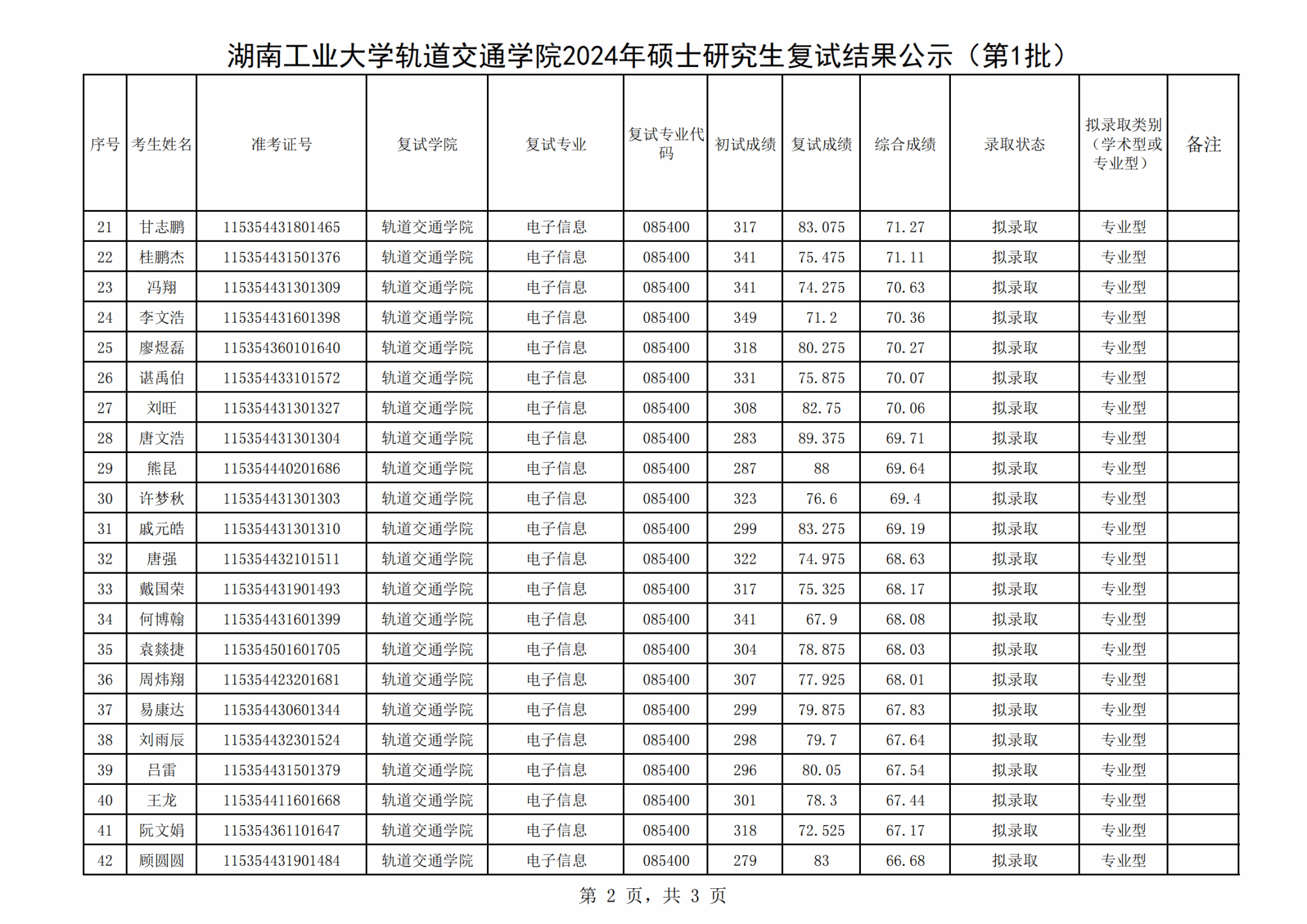 湖南工业大学2024年伟德国际1946源于英国(第二批)复试名单