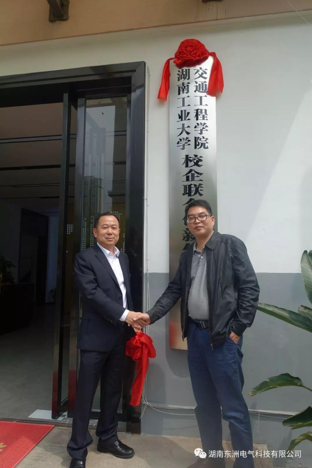 湖南工业大学教务处周柏林副处长与东洲电气老总柴神洲共同揭牌