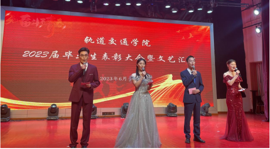在庄严的国歌声中,毕业生表彰大会正式拉开序幕。院党委书记李志刚宣读2023届省级、校级优秀毕业生表彰决定。随后,副校长龙永红为省级优秀毕业生颁发荣誉证书并合影留念。