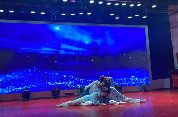 张希、李扬帆、谢萌等带来了现代舞《化身孤岛的鲸》,带着独有的频率,潜至蓝色深处。