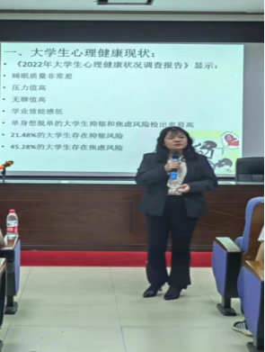 曾主任主要从大学生心理健康状况、心理危机识别与干预等方面展开,重点介绍了什么是心理危机,如何去筛查以及帮助我们身边的发生心理危机的同学。她表示,大学生心理健康状况需要关注,在特殊时刻要密切关注周围同学的身体、行为、情绪以及认知是否有异常,确定问题时要保证学生安全并提供心理支持,同时注意保密原则。心理危机过程本身的隐蔽性、累积性,加之心理咨询遭遇误解,使得心理危机识别工作尤为重要。