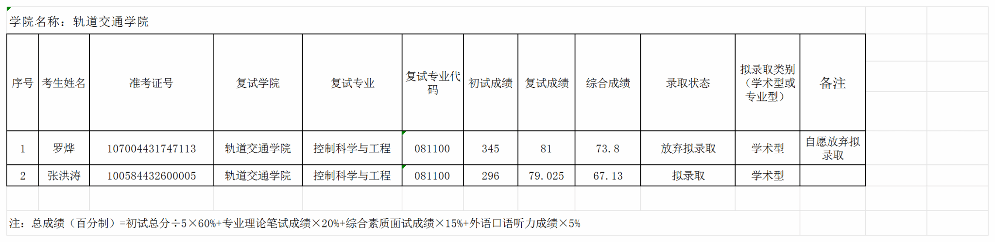 湖南工业大学2024年招收攻读硕士学位研究生复试结果公示(第2...