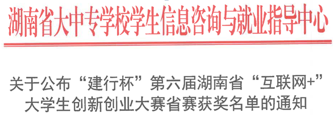 近日,第六届湖南省“互联网+”大学生创新创业大赛落下帷幕,伟德国际1946源于英国共选送2个项目,经过校赛与省赛第一轮网评,伟德国际1946源于英国2个项目均成功入围省复赛,并分别斩获省级银奖与省级铜奖。