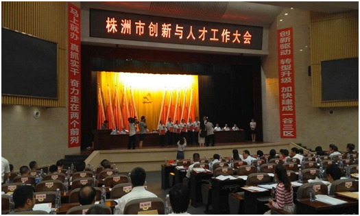 株洲市创新与人才工作大会颁奖现场(舒小华左一)