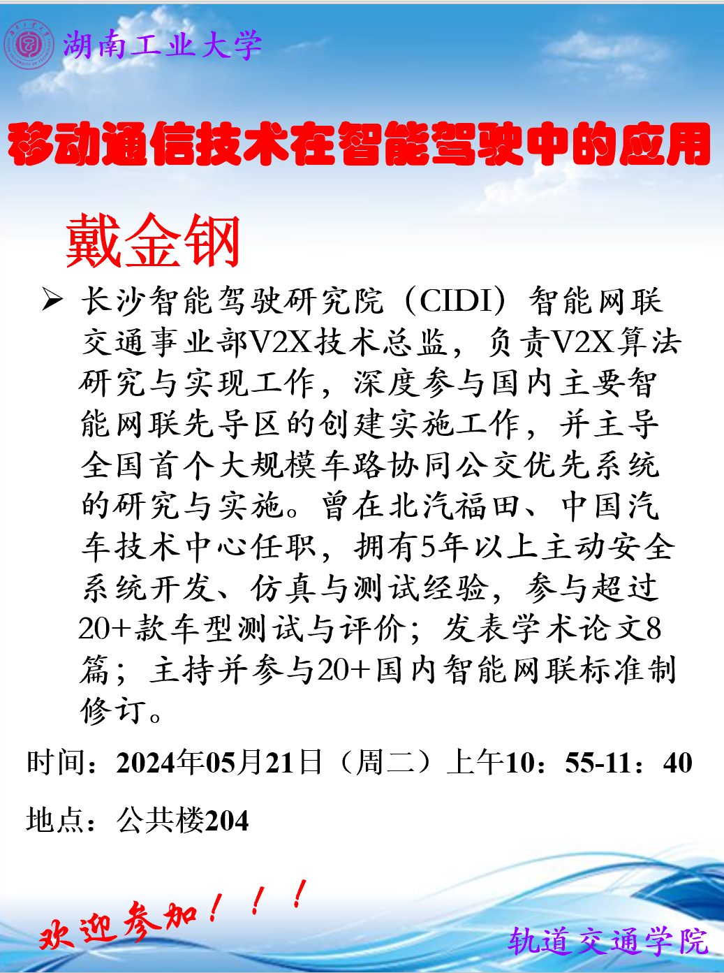 学术讲座---移动通信技术在智能驾驶中的应用