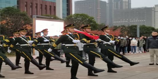 在庄严的国歌中,五星红旗冉冉升起,迎风飘扬。所有在场人员驻足向国旗行注目礼,深怀对祖国无限的热爱和崇高的敬意。