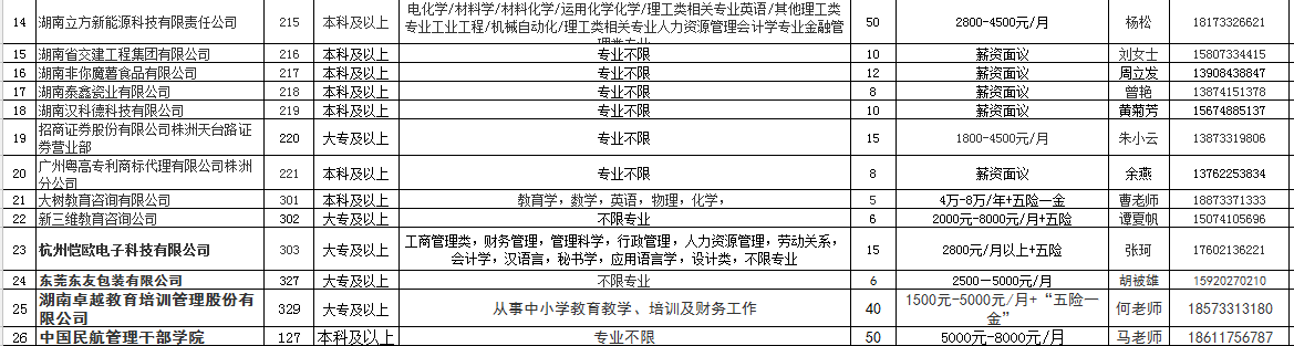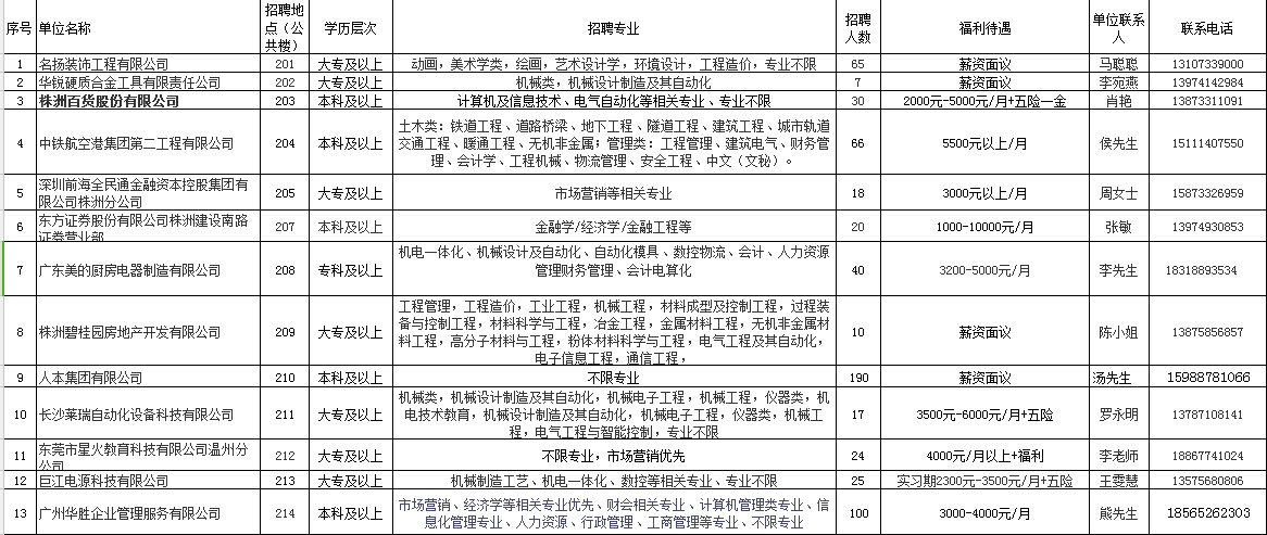 湖南工业大学第六周(20170328)校园招聘工作安排