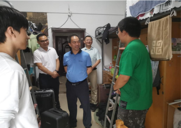 在走访学生宿舍过程中,王书记对毕业生的离校前手续办理情况、升学、未来规划、情绪状态等进行了详细了解,他叮嘱同学们离校时带好自己的物品,走出校园,继续努力拼搏,不断提高专业素养,学以致用,认真踏实,在自己的岗位上大展宏图。同学们也真诚表达了自己对母校、学院领导、老师及同学们的留恋与不舍,表示将牢记领导和老师们的谆谆教诲,不辜负他们的期望,以更优异的成绩回报母校,回报社会。